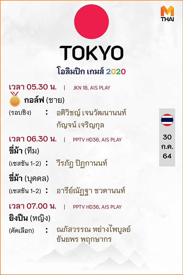 ตารางแข่งขันโอลิมปิก 2020 ไทย ณ วันที่ 28 กรกฎาคม 2564.